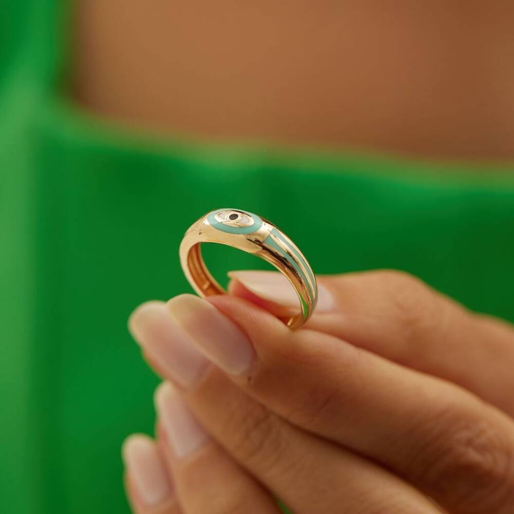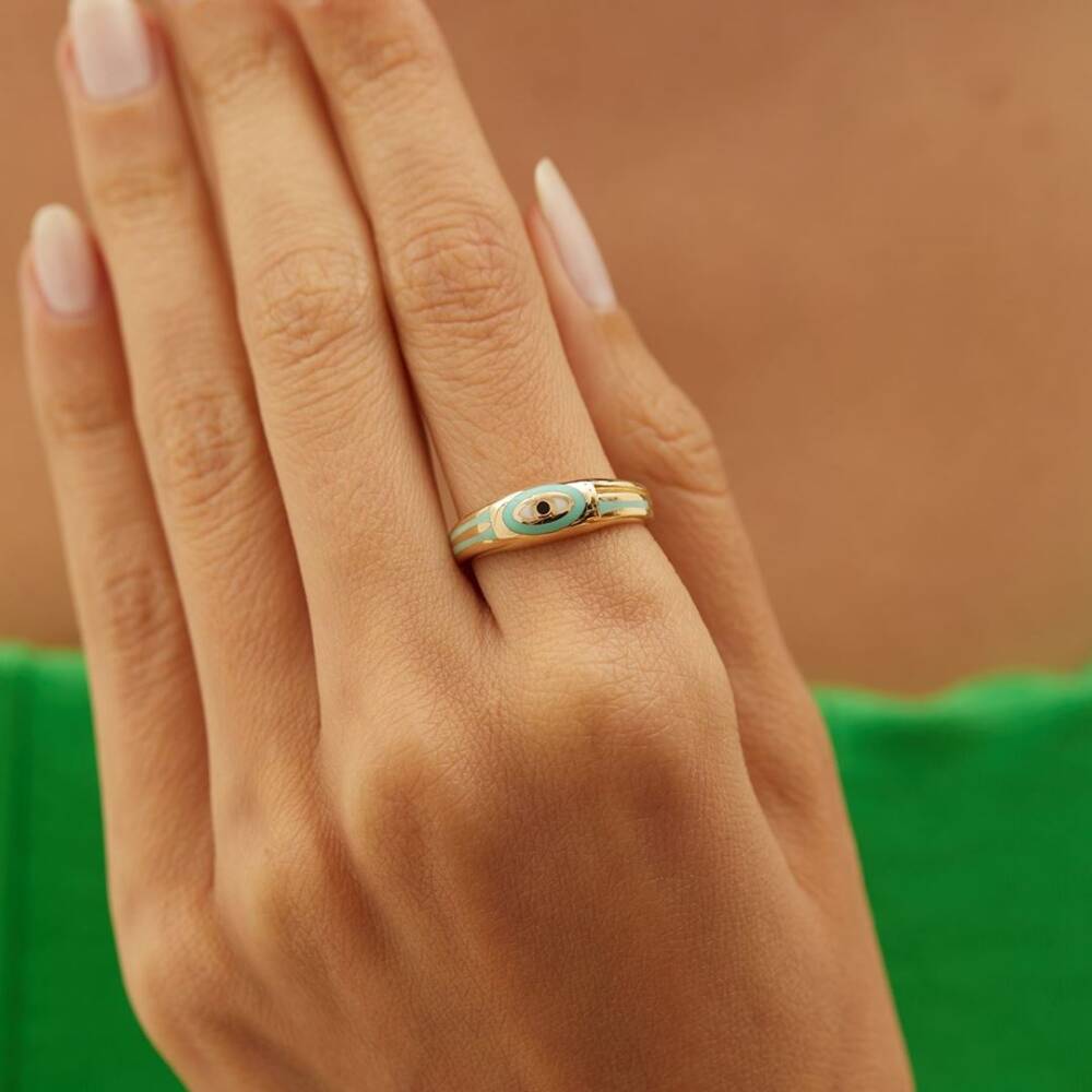 Turkuaz Mineli Göz Figürlü Altın Yüzük - 1