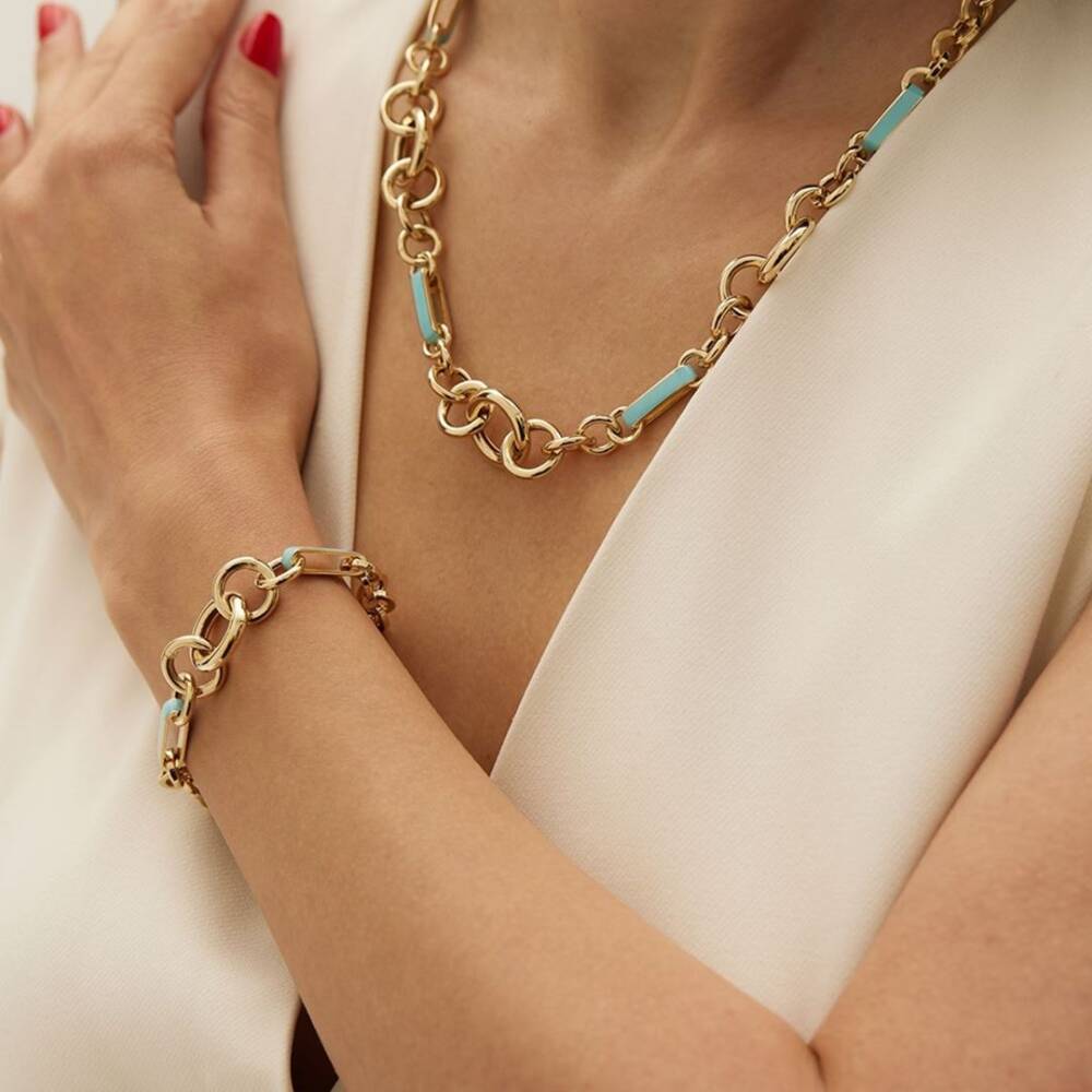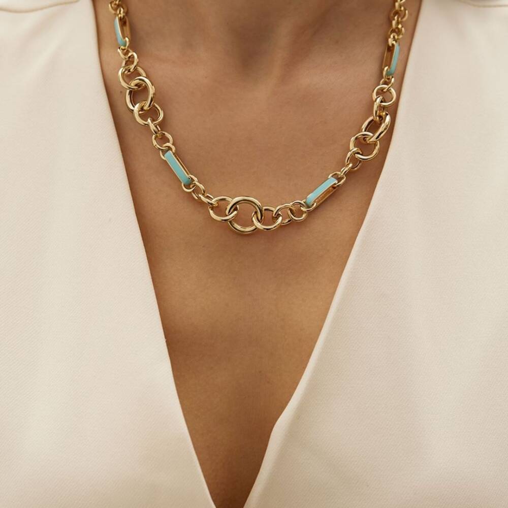 Turkuaz Mineli İri Zincirli Altın Kolye - 1
