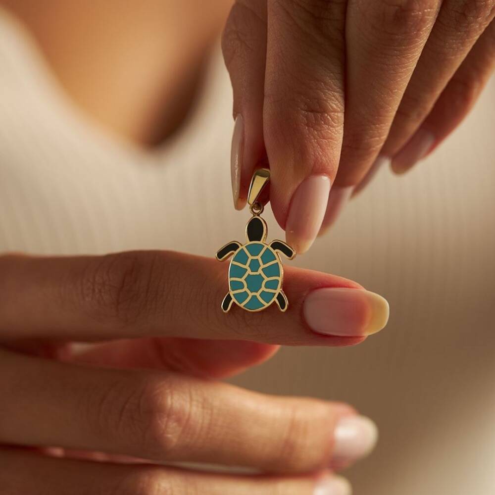 Turkuaz Mineli Kaplumbağa Altın Kolye Ucu - 1
