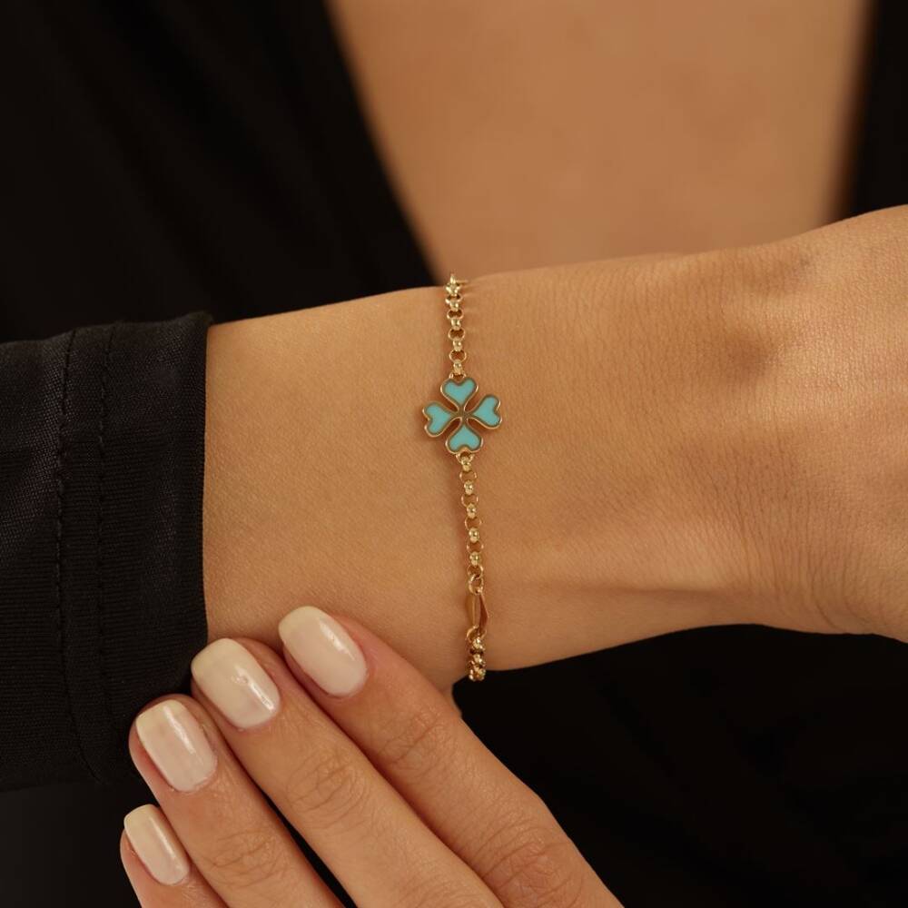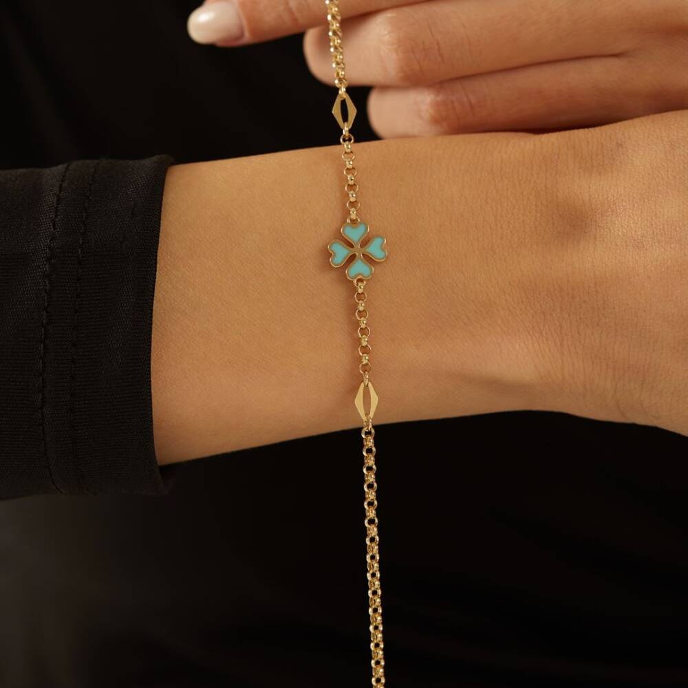 Turkuaz Mineli Yonca Altın Bileklik - 1