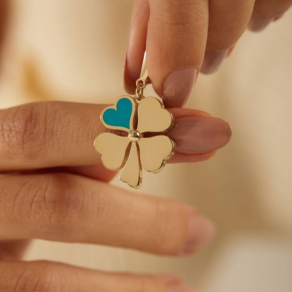Turkuaz Mineli Yonca Altın Kolye Ucu