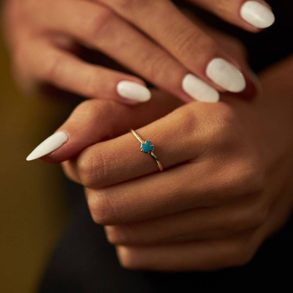 Turkuaz Mineli Yonca Altın Yüzük - 1