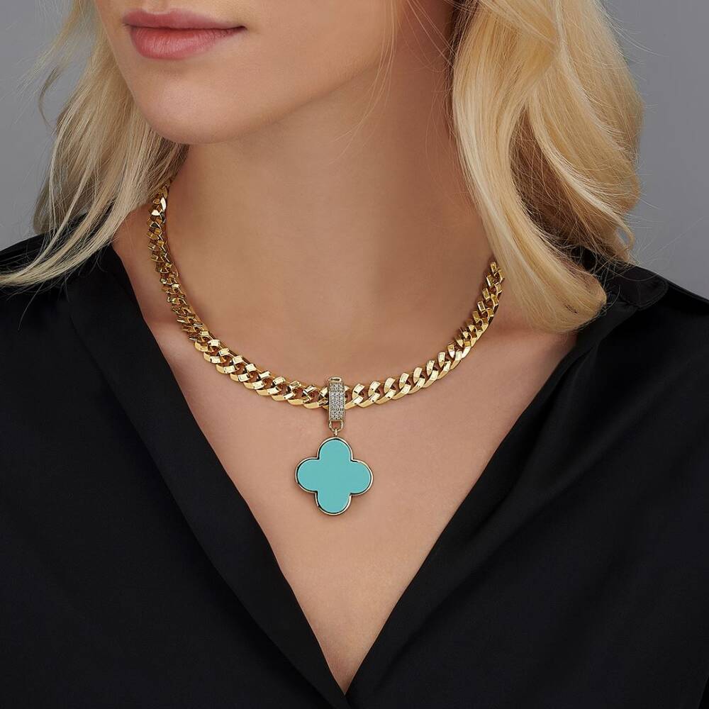 Turkuaz Mineli Yonca Charm