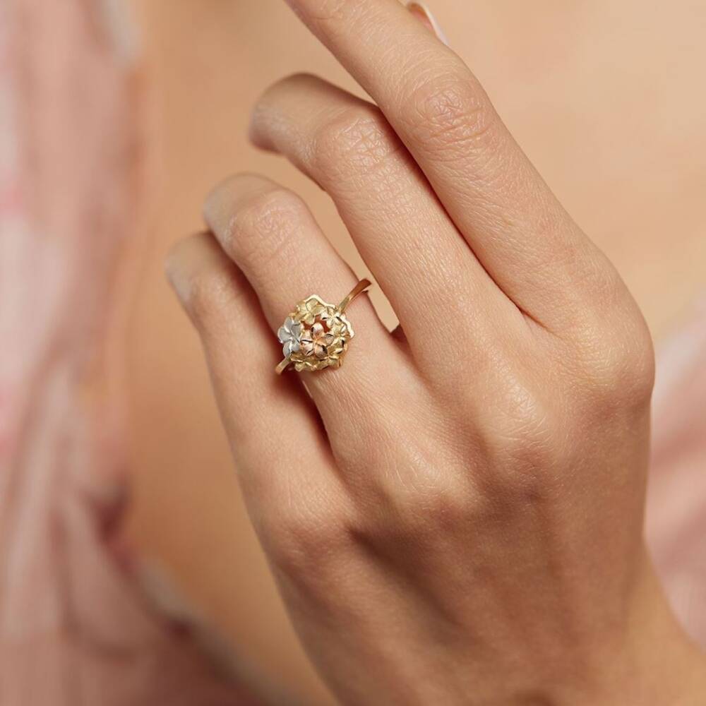 Üç Renk Çiçekli Altın Yüzük