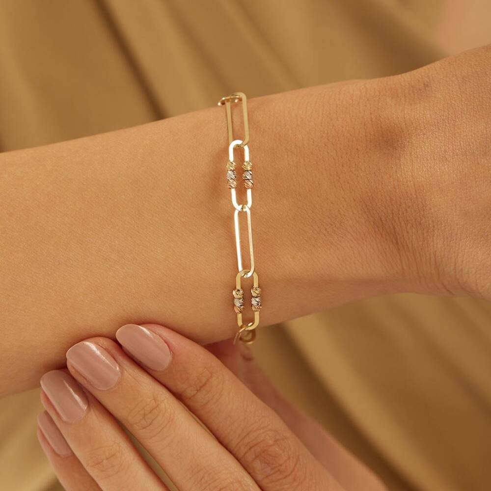 Üç Renk Dorika Toplu Ataş Zincir Altın Bileklik - 1