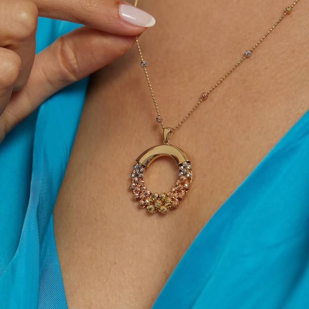 Üç Renk Dorikalı Yuvarlak Altın Kolye - 1