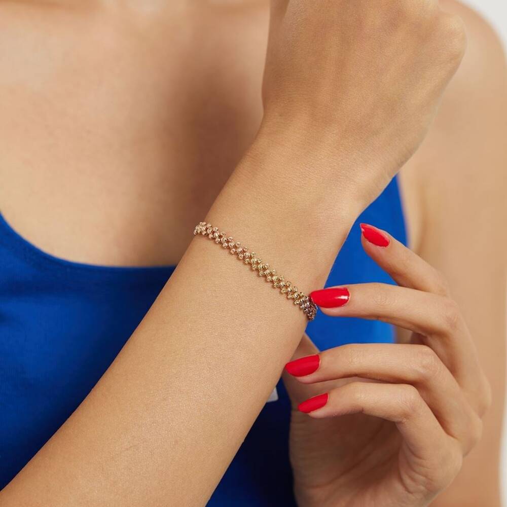 Üç Renkli Dorika Top Zincirli Altın Bileklik - 1