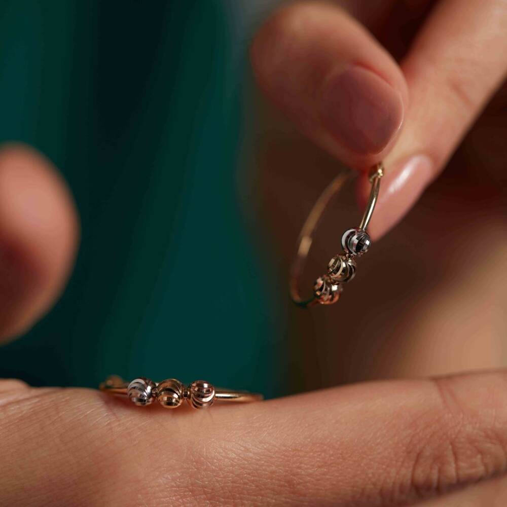 Üç Renkli Dorika Toplu Halka Altın Küpe - 1