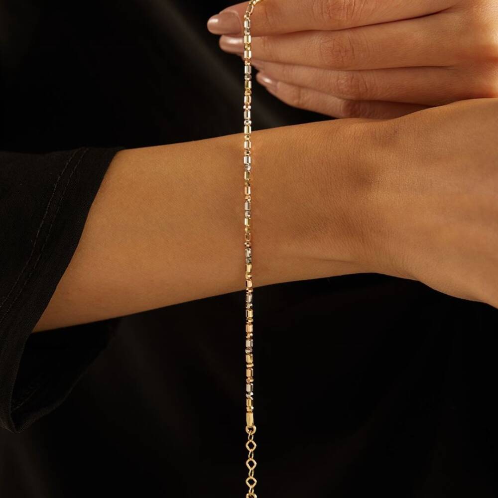 Üç Renkli Dorikalı Şerit Tasarımlı Altın Bileklik - 1