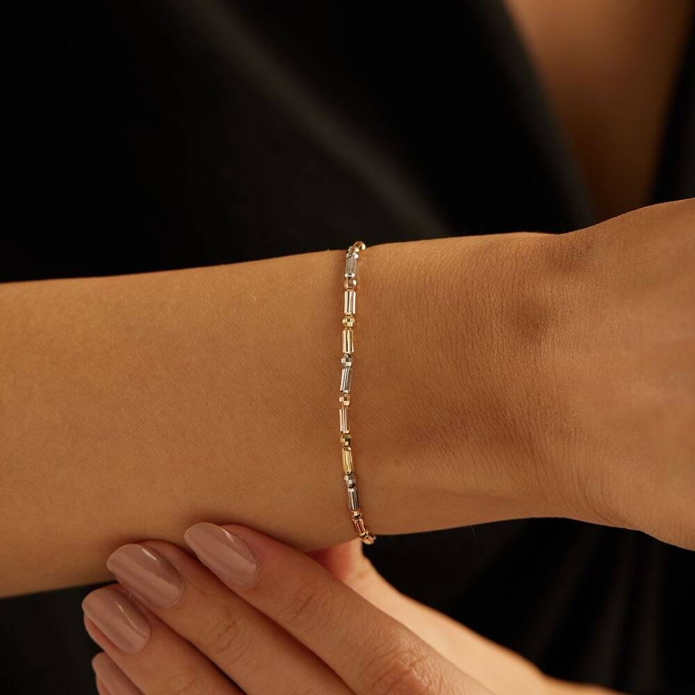 Üç Renkli Dorikalı Şerit Tasarımlı Altın Bileklik