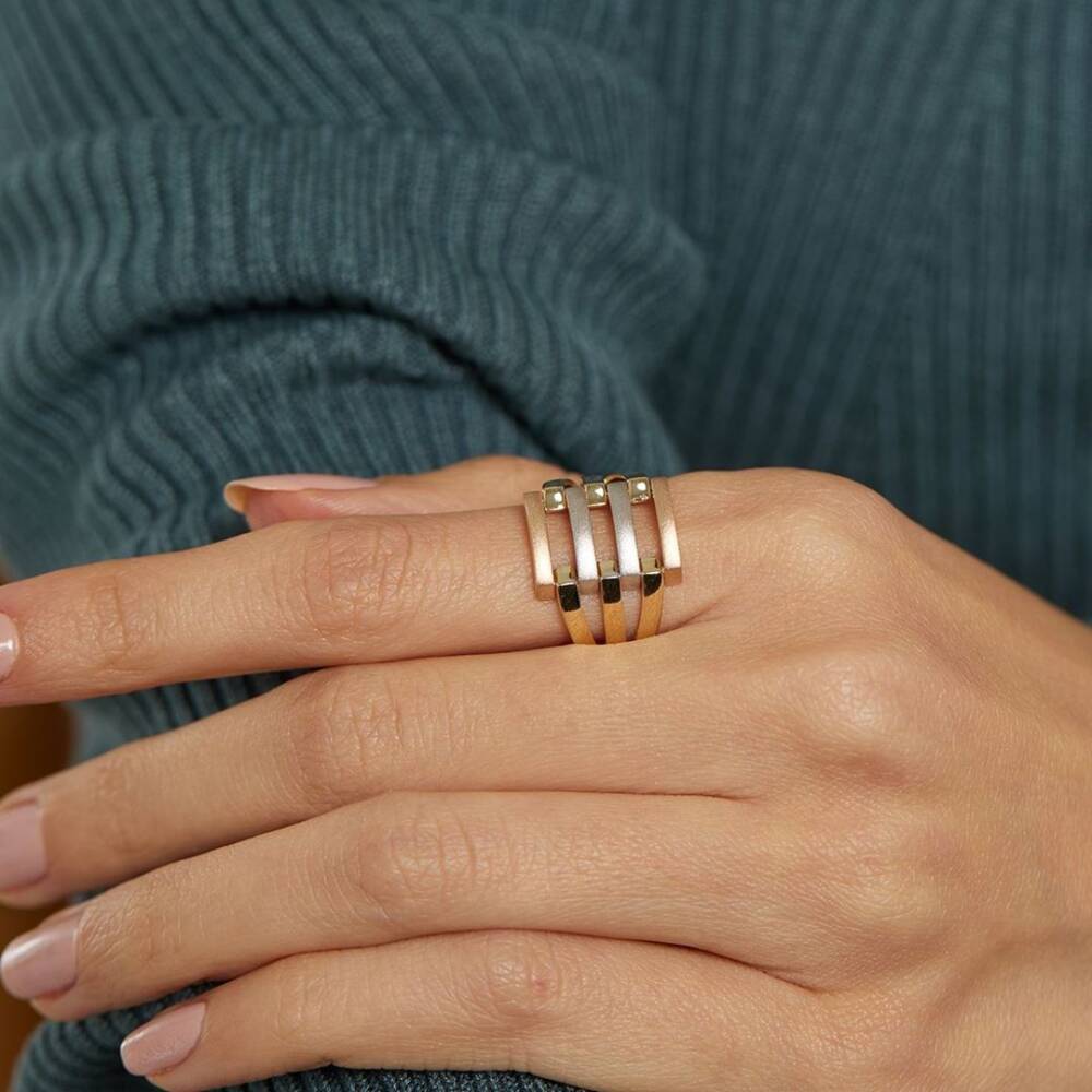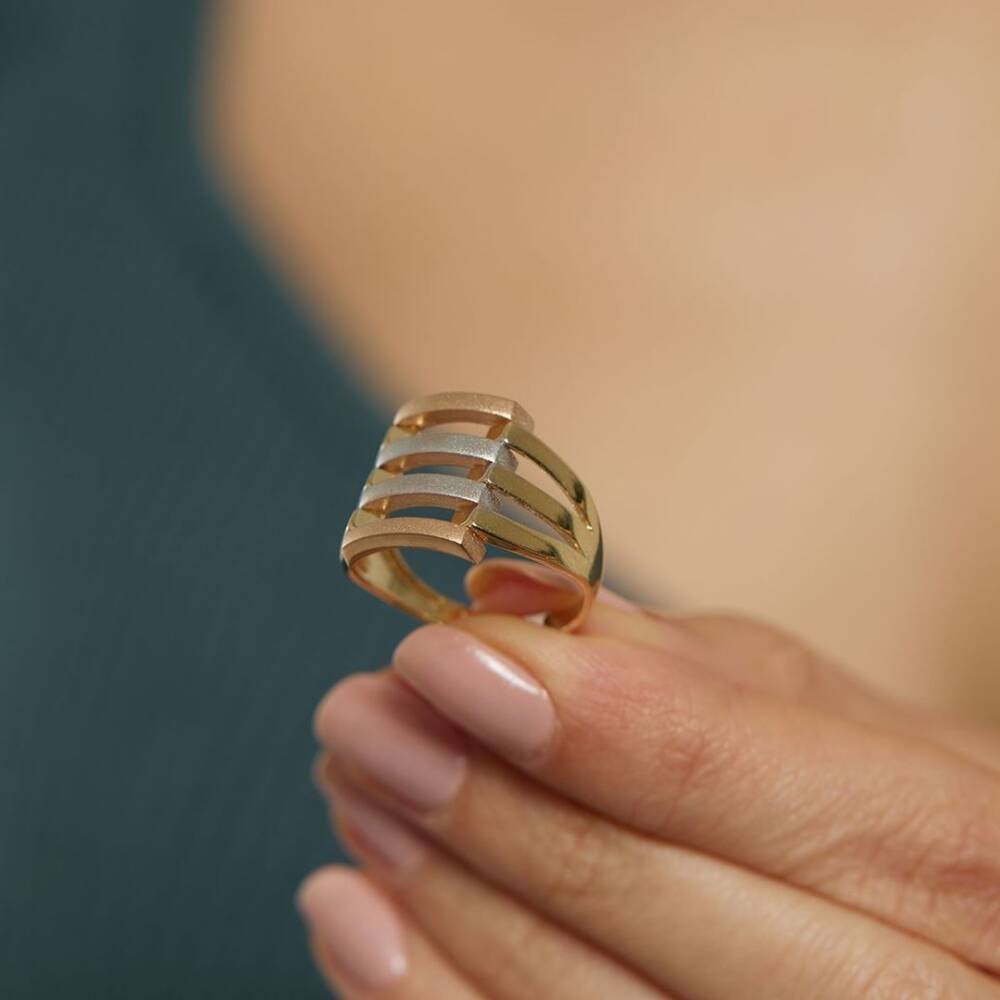 Üç Renkli Kaburga Tasarım Altın Yüzük - 1