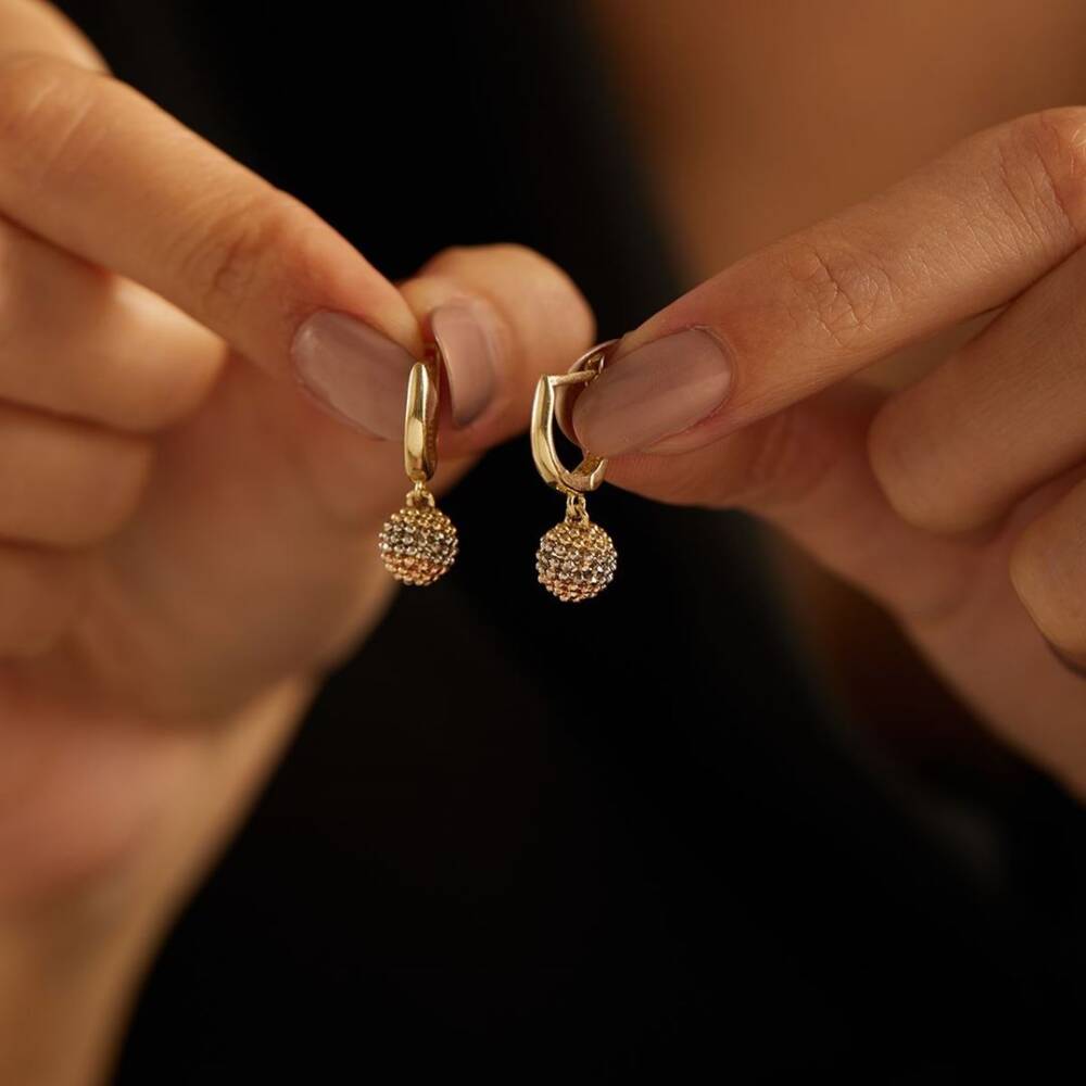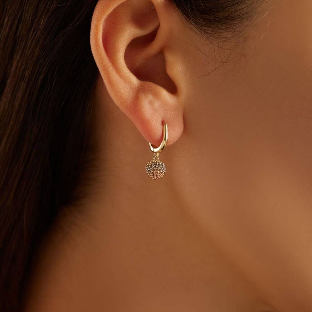 Üç Renkli Sallantılı Top Altın Küpe - 1