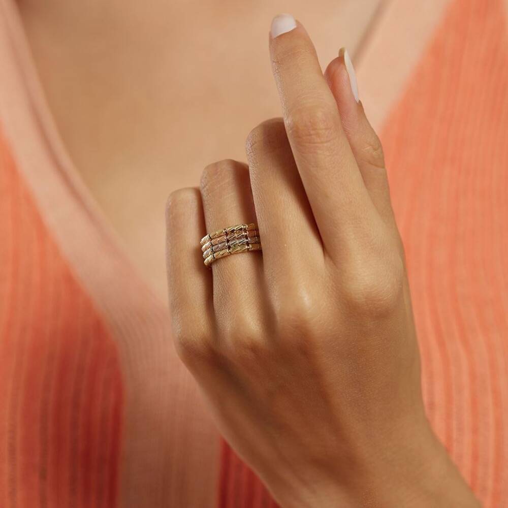 Üç Renkli Şerit Taşlı Altın Yüzük