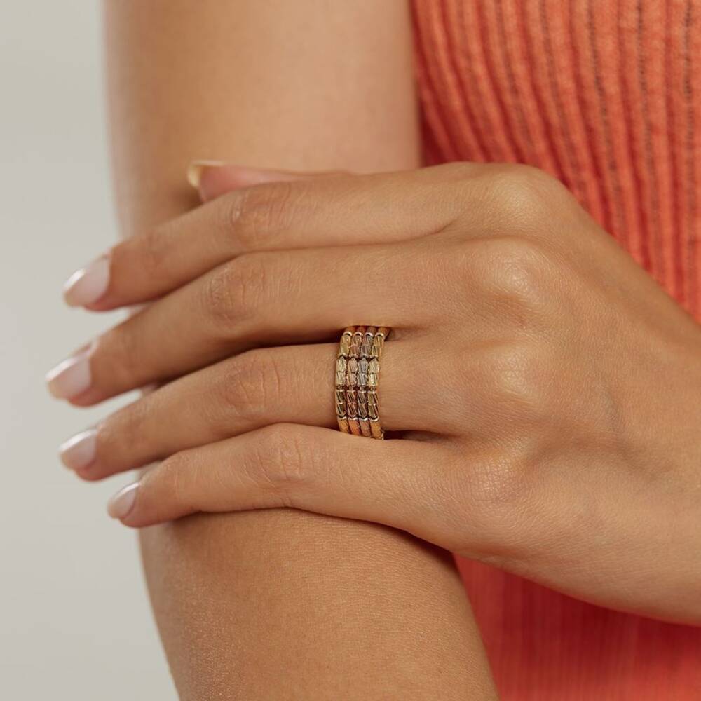 Üç Renkli Şerit Taşlı Altın Yüzük - 1