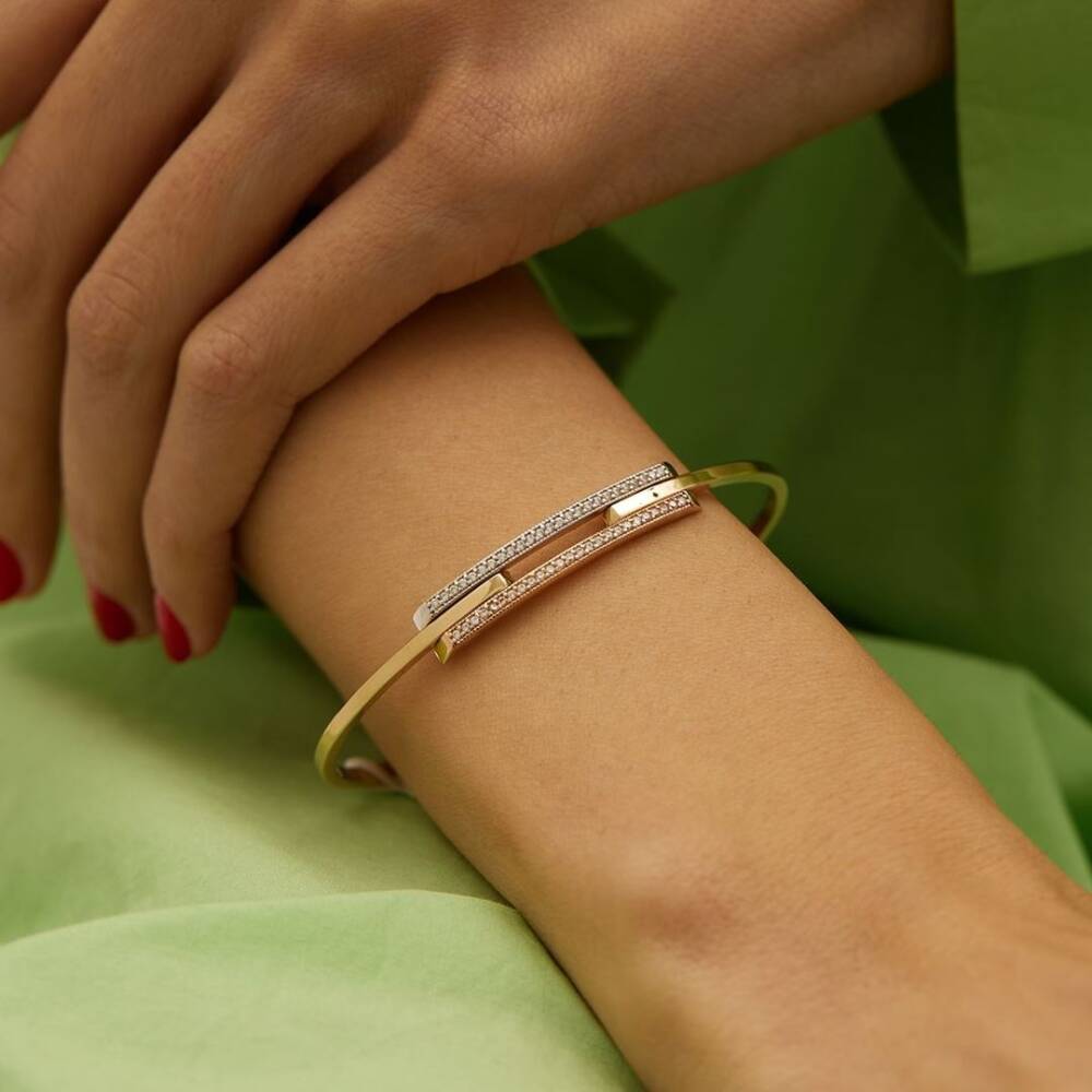 Üç Renkli Taşlı Altın Kaburga Bilezik - 1