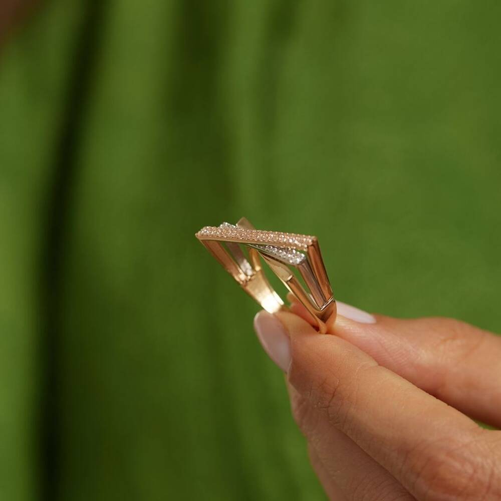 Üç Renkli Taşlı Zikzak Altın Yüzük - 2