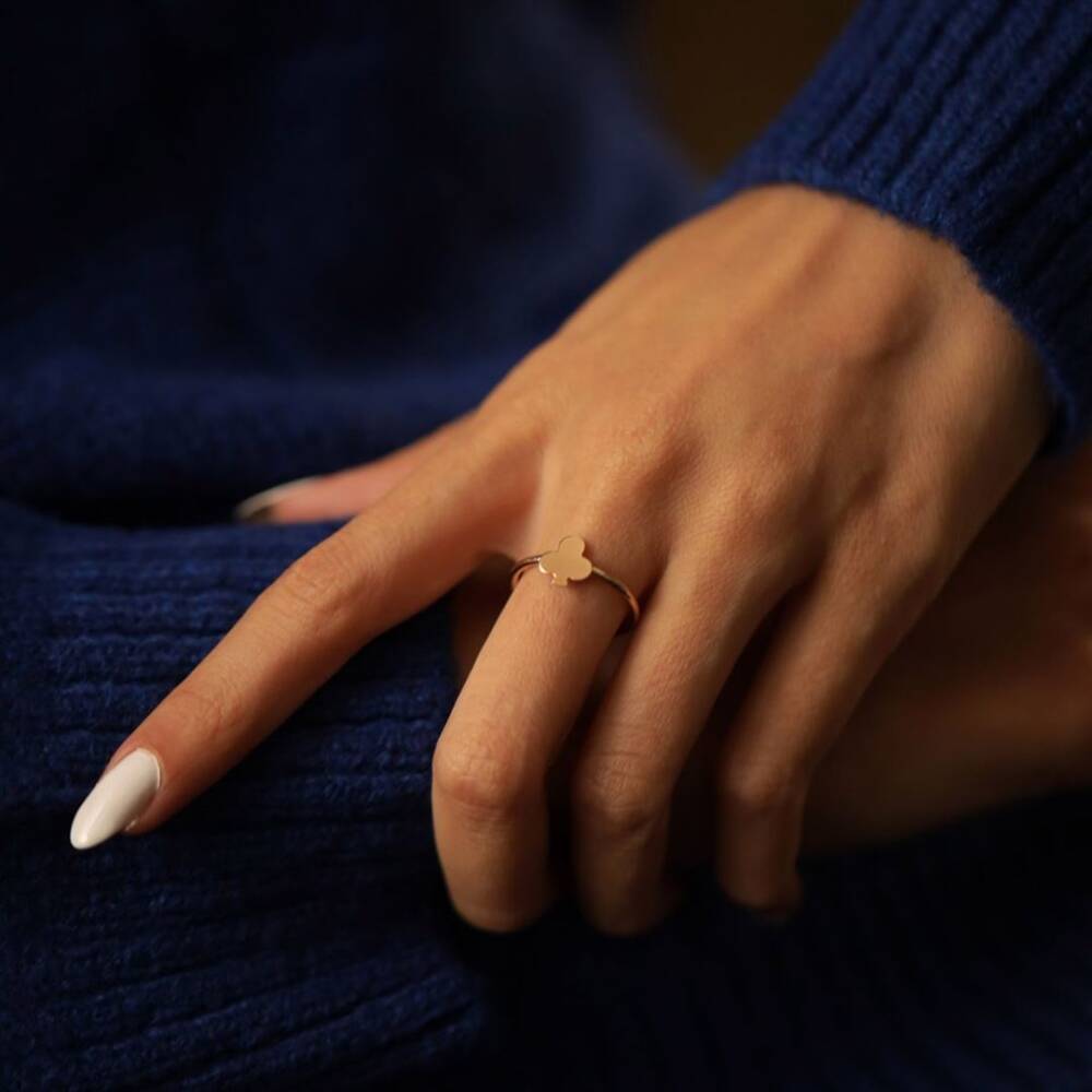 Üç Yapraklı Plaka Yonca Altın Yüzük