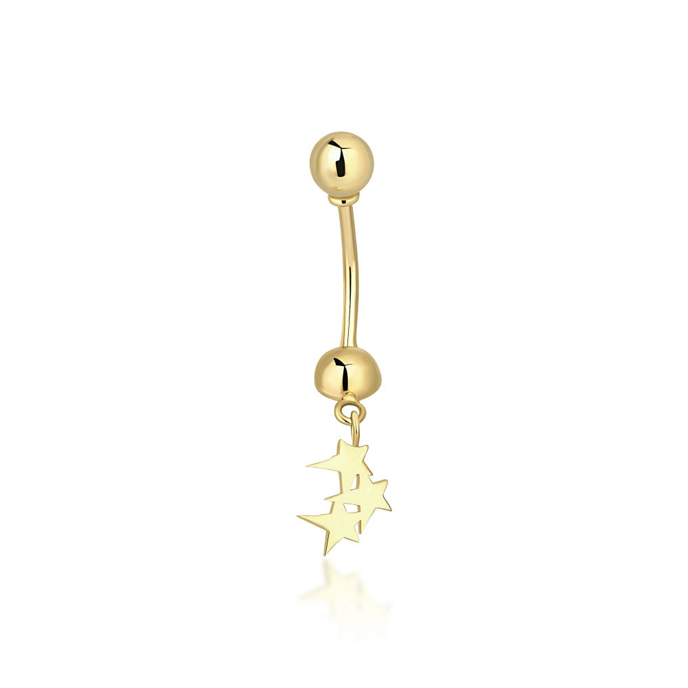 Üç Yıldız Sallantılı Altın Göbek Piercingi - 1