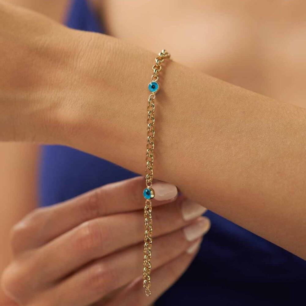 Üçlü Nazar Boncuklu Altın Bileklik - 1
