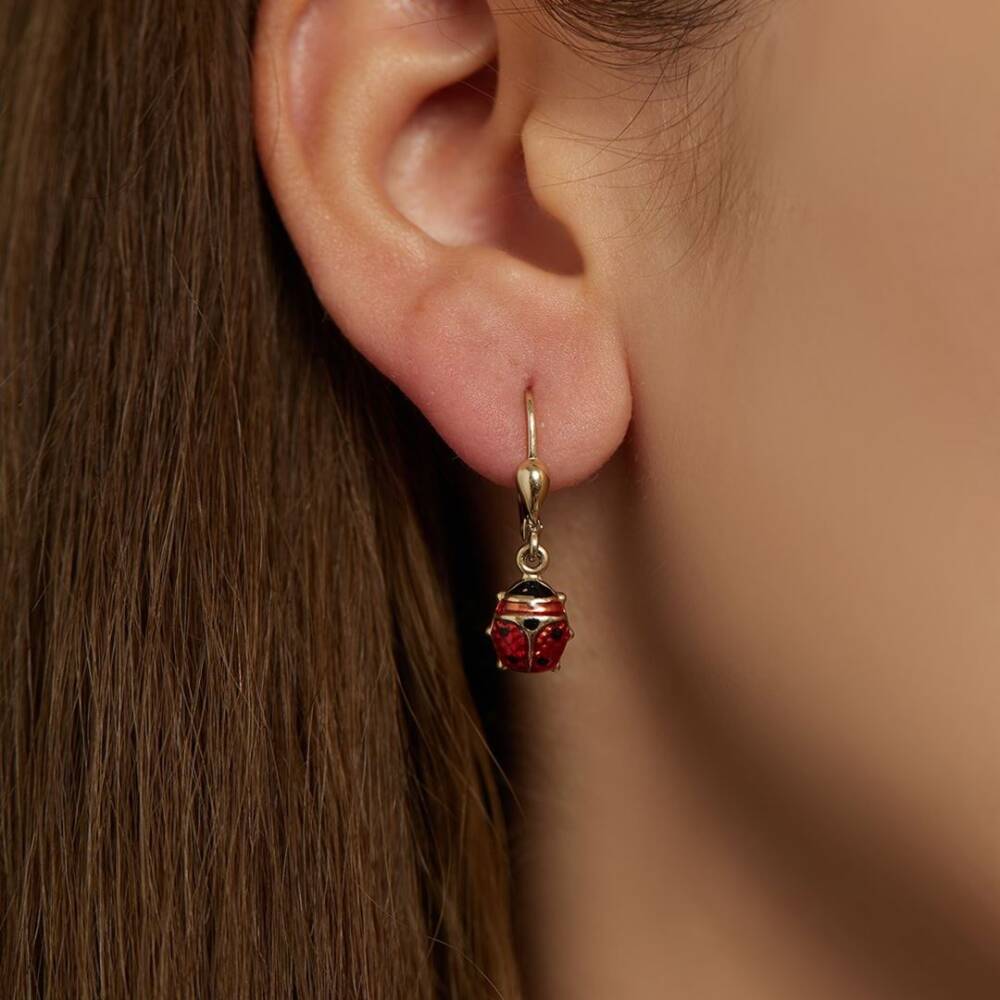 Uğur Böceği Sallantılı Altın Küpe - 1