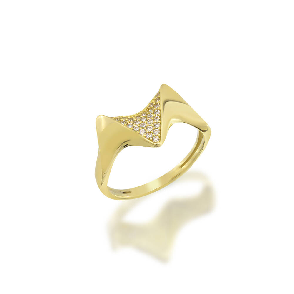 V Detaylı Taşlı Altın Yüzük - 1