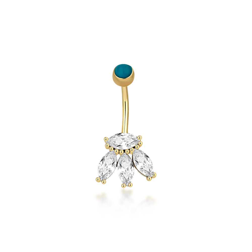 Mavi Toplu Markiz Taşlı Rose Göbek Piercingi