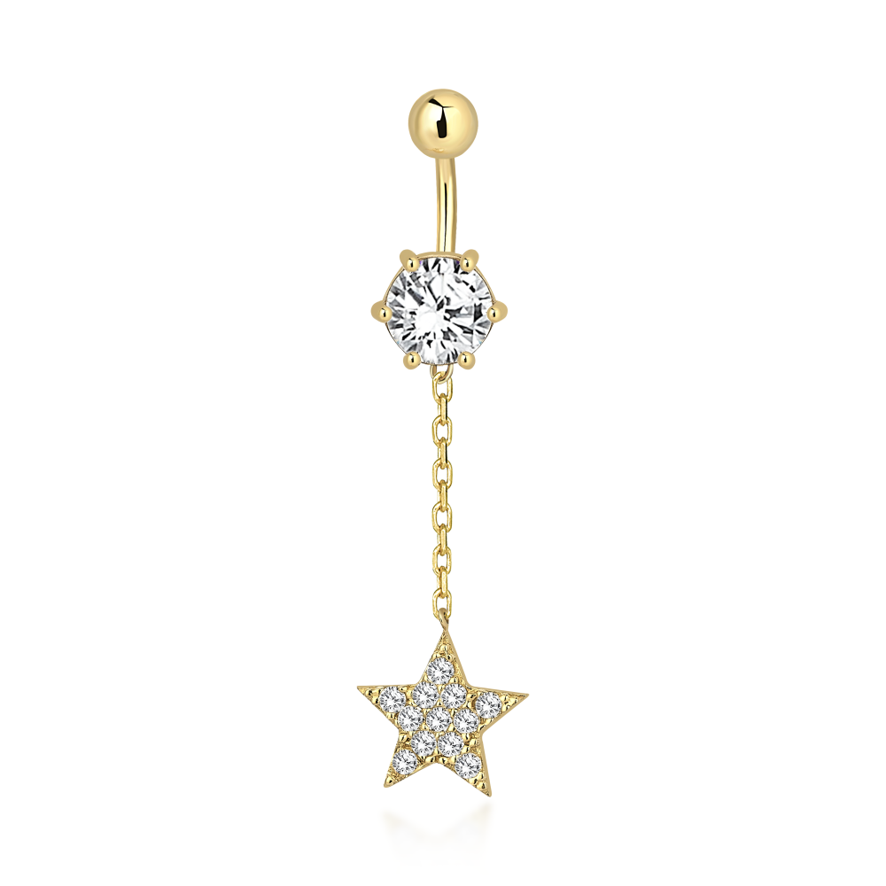 Taşlı Yıldız Sallantılı Altın Göbek Piercingi