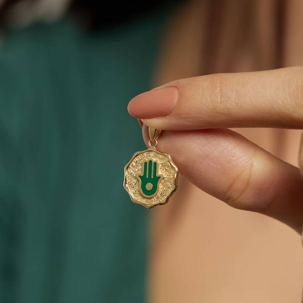 Yeşil Mineli Fatma Ana Eli Altın Kolye Ucu - 1