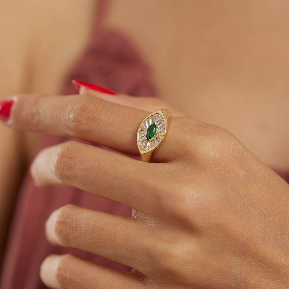 Yeşil Taşlı Göz Şövalye Altın Yüzük - 1