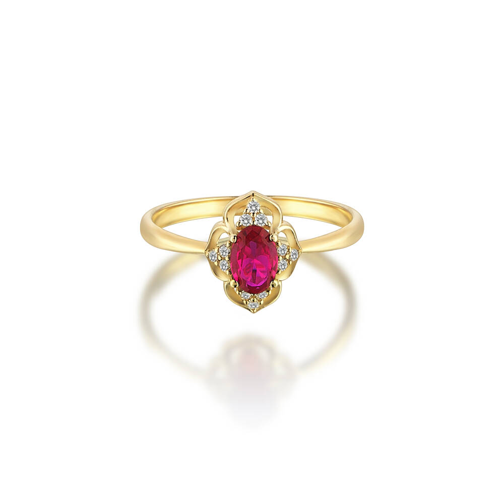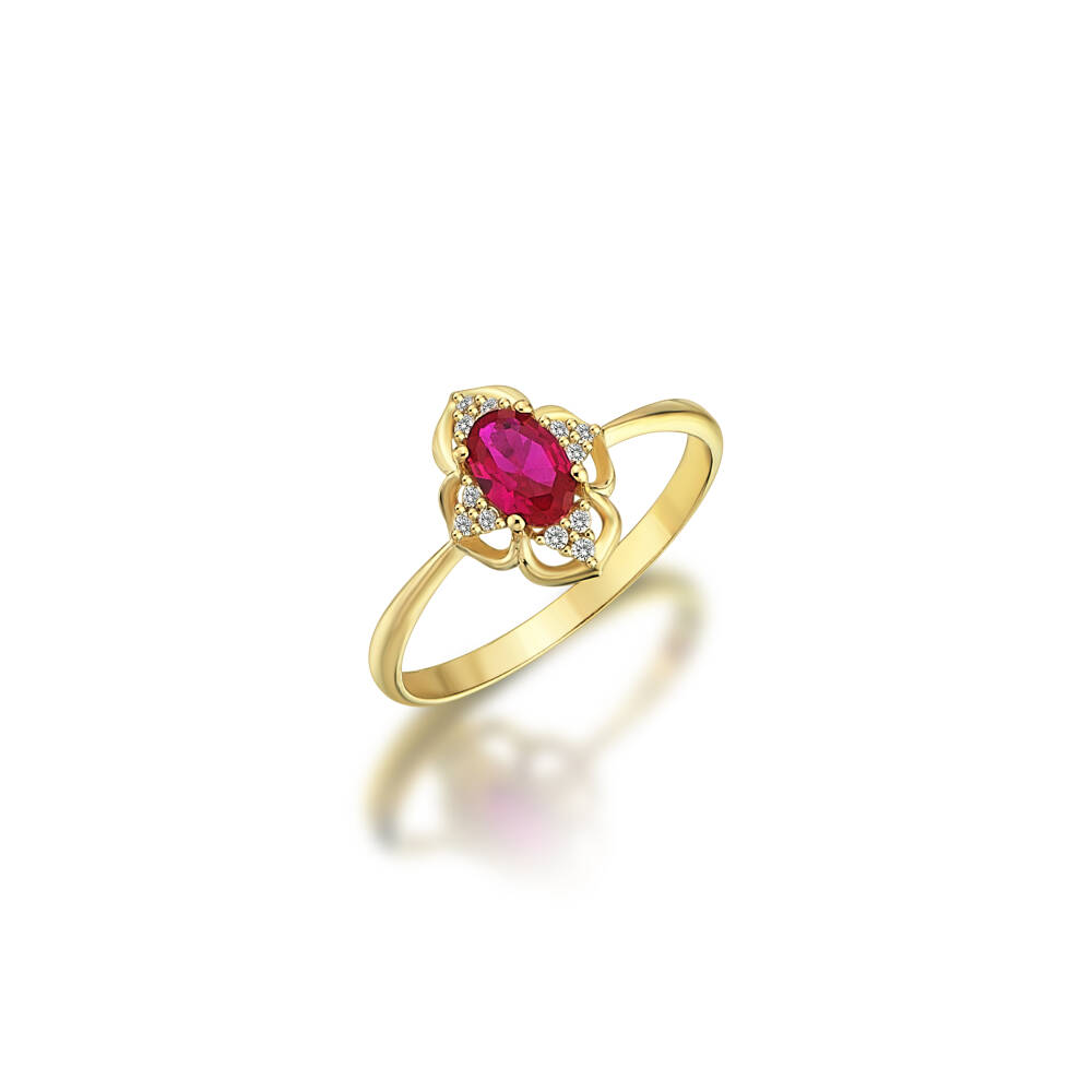 Pembe Taşlı Oval Kesim Altın Yüzük - 1