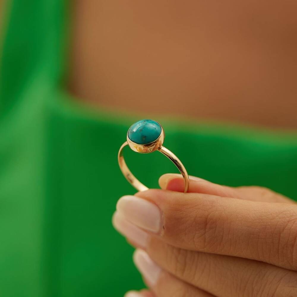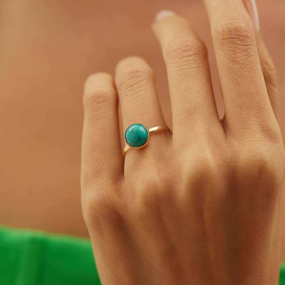 Yeşil Taşlı Yuvarlak Altın Yüzük