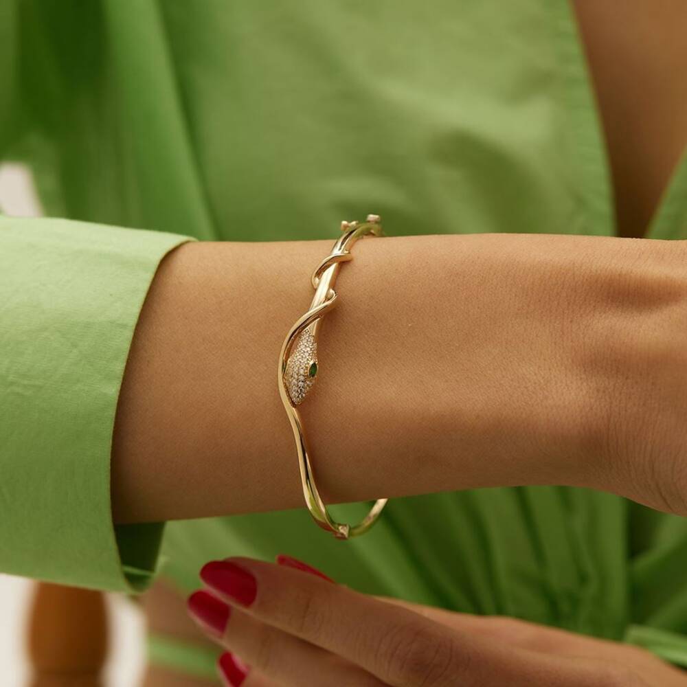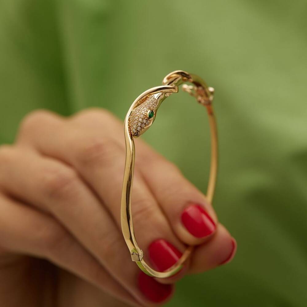 Yılan Figürlü Taşlı Altın Tasarım Bilezik