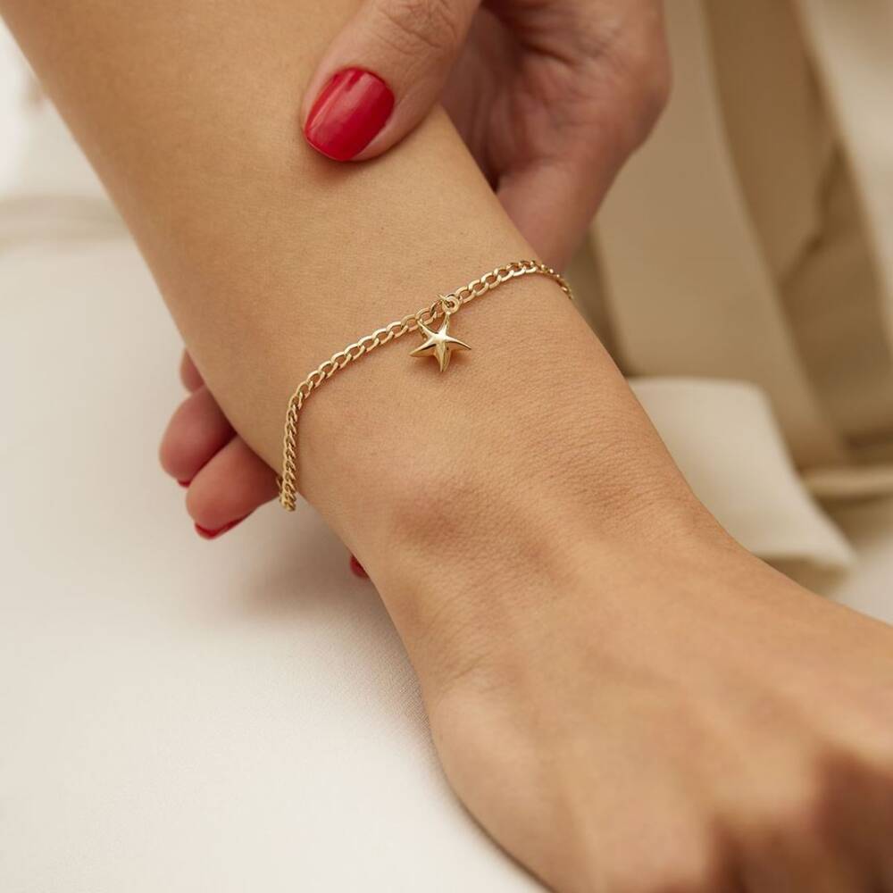 Yıldız Sallantılı Minimal Altın Zincir Bileklik - 1