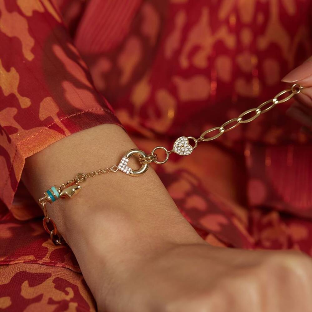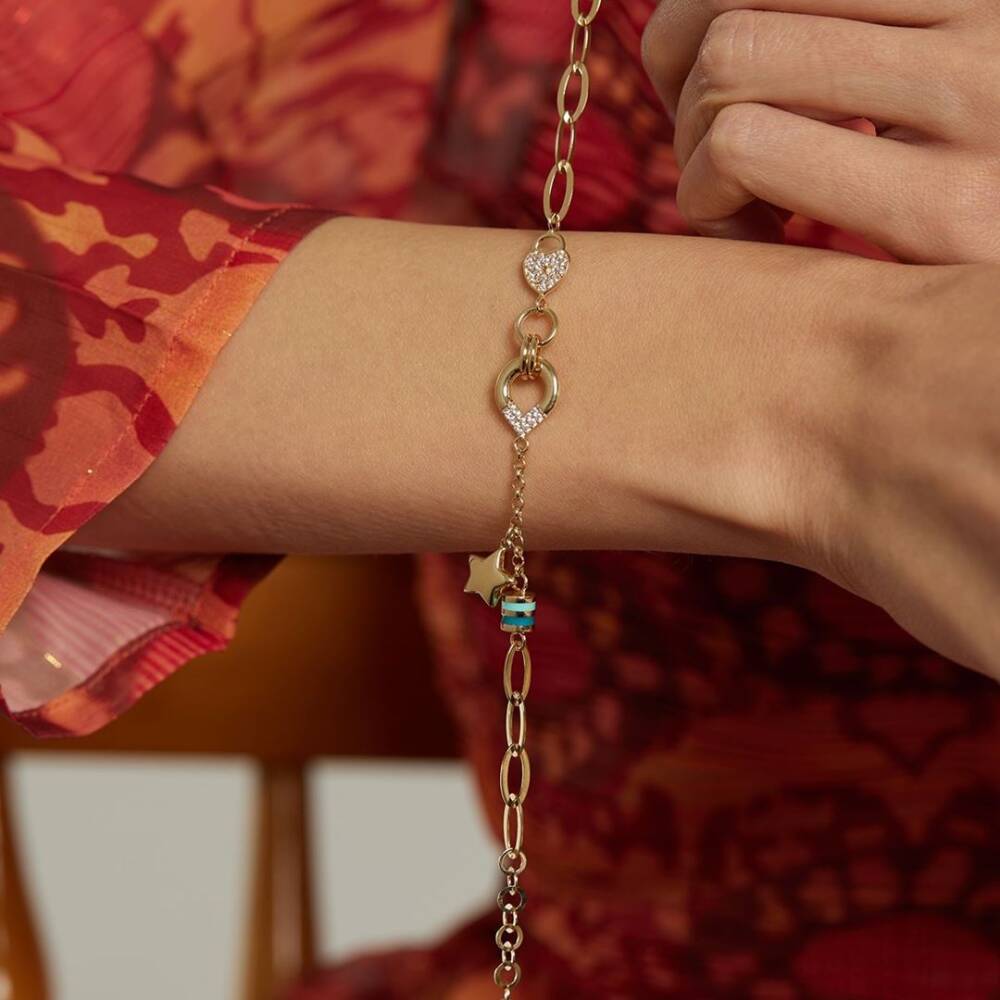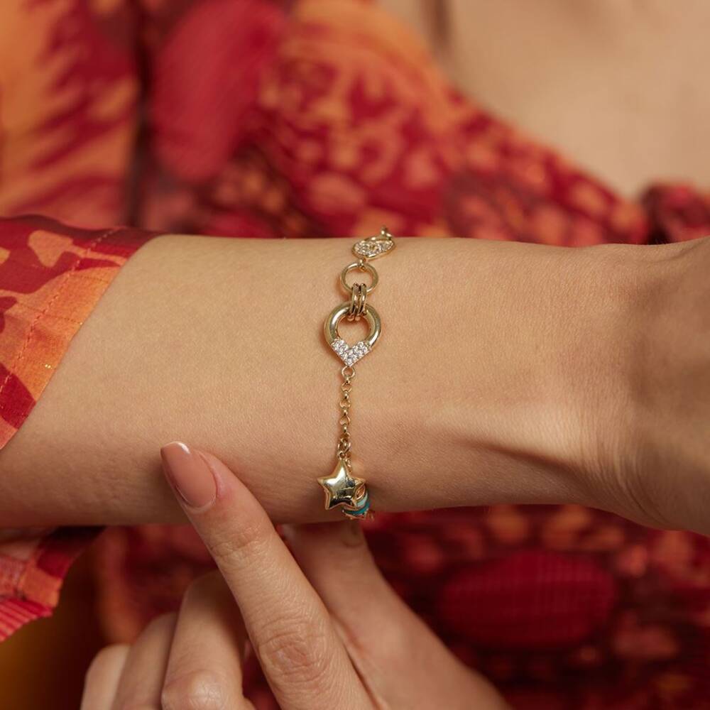 Yıldız Sallantılı Taşlı Kilitli Altın Zincir Bileklik