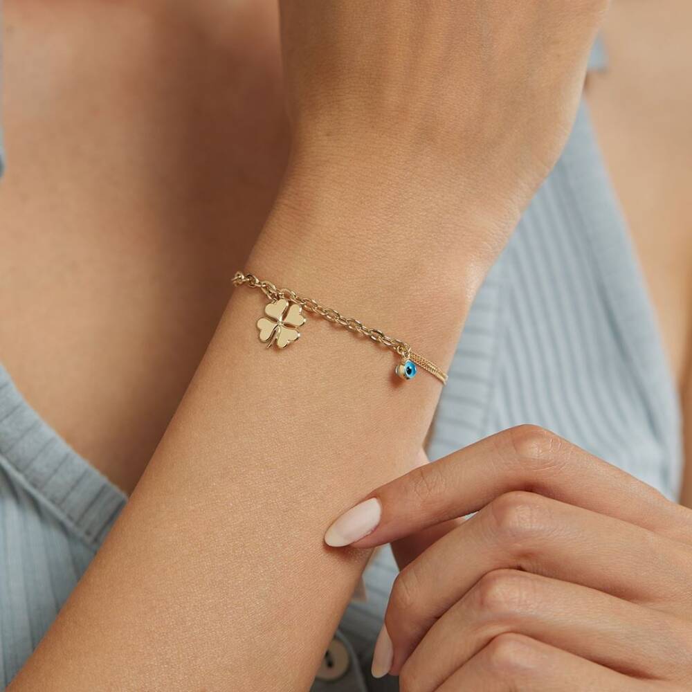 Yonca Ve Nazar Boncuklu Altın Zincir Bileklik - 1