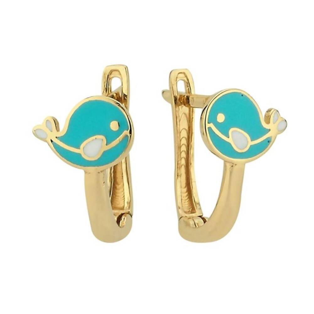Yunus Balığı Figürlü Altın Çocuk Küpesi - 1