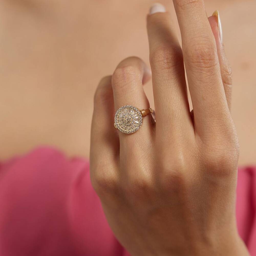 Yuvarlak Baget Taşlı Altın Yüzük - 1