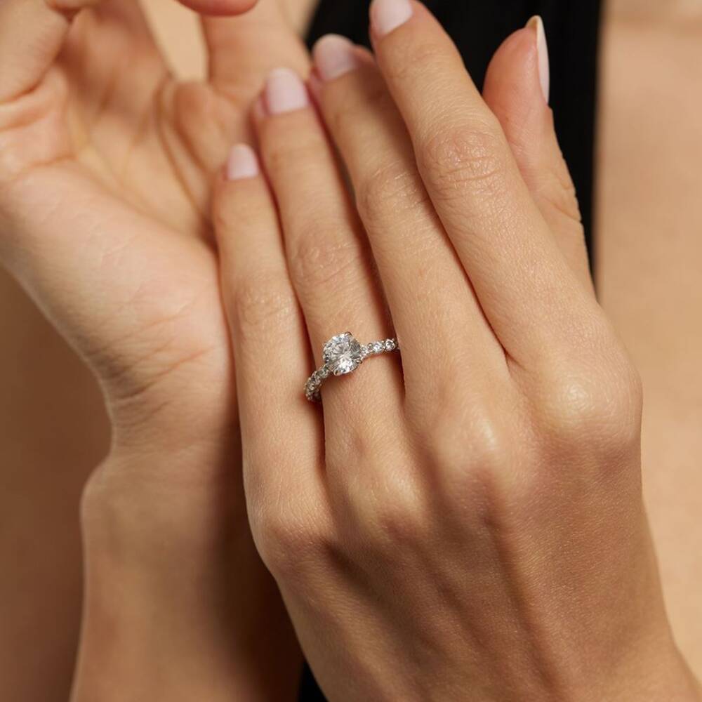 Yuvarlak Etrafı Taşlı Tektaş Altın Yüzük - 1