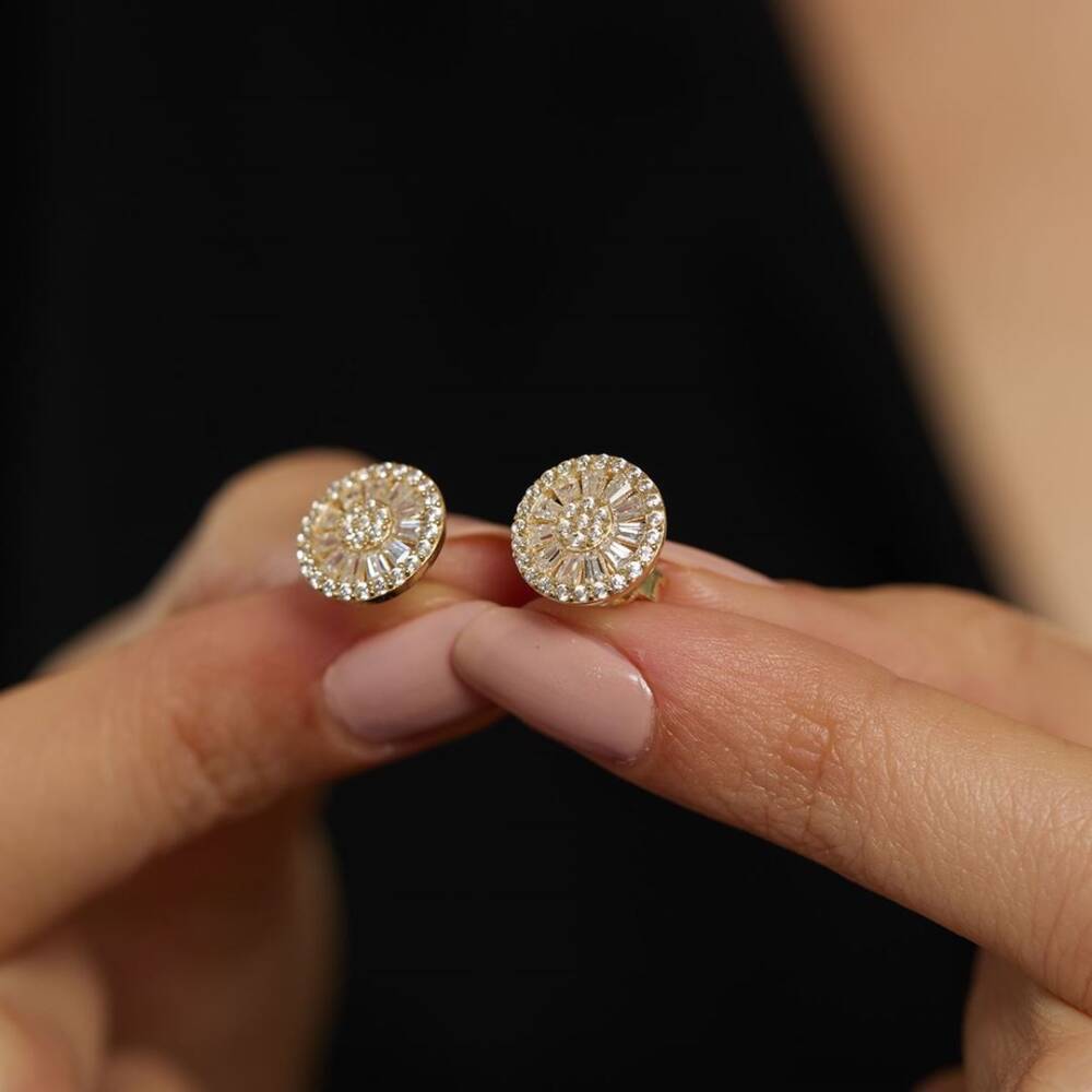 Yuvarlak Formlu Taşlı Altın Küpe - 1