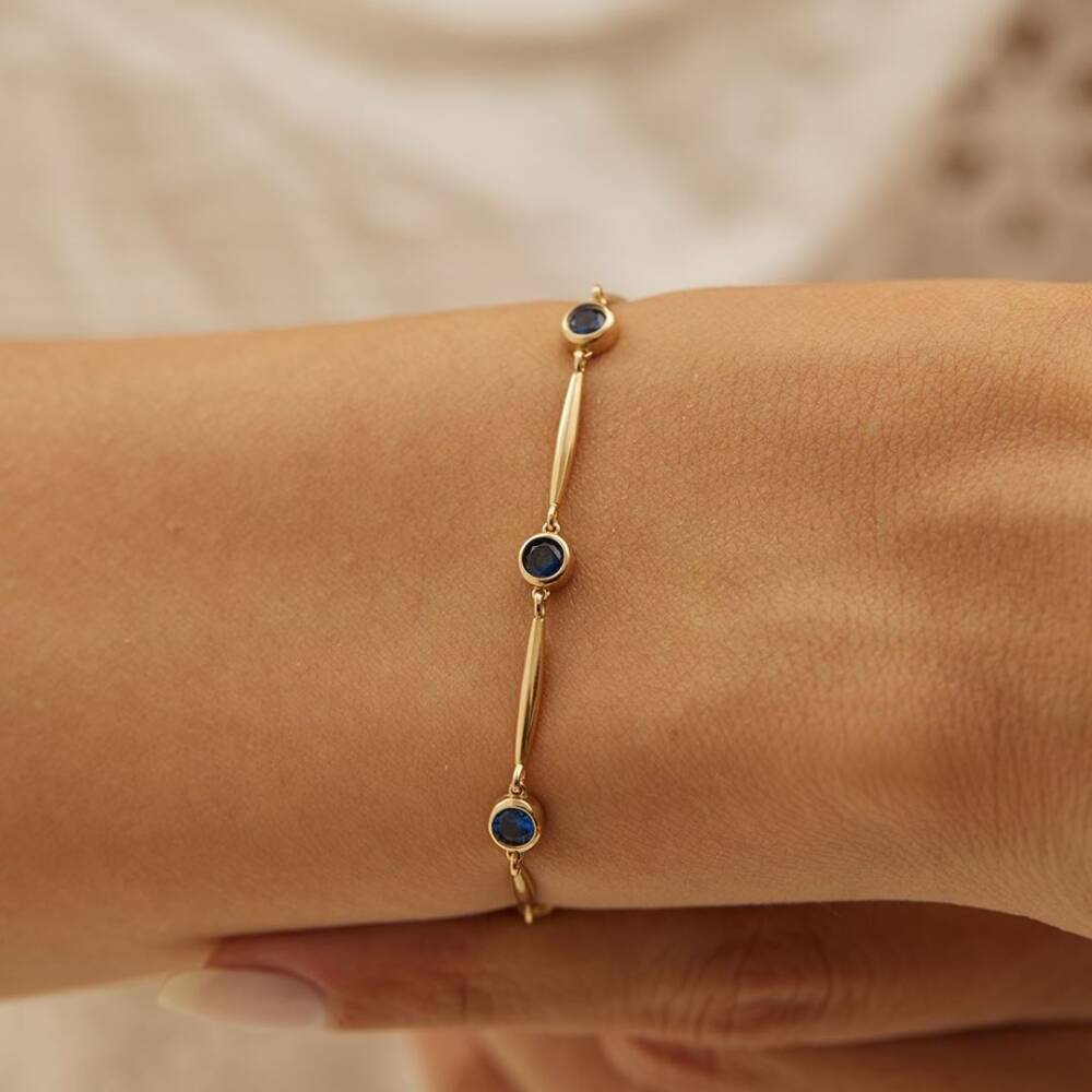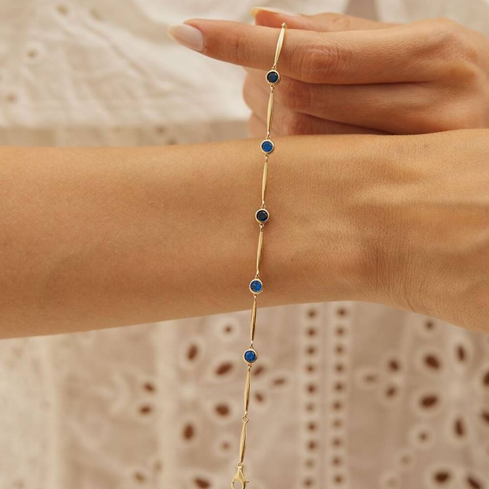 Yuvarlak Lacivert Taşlı Altın Zincir Bileklik - 1