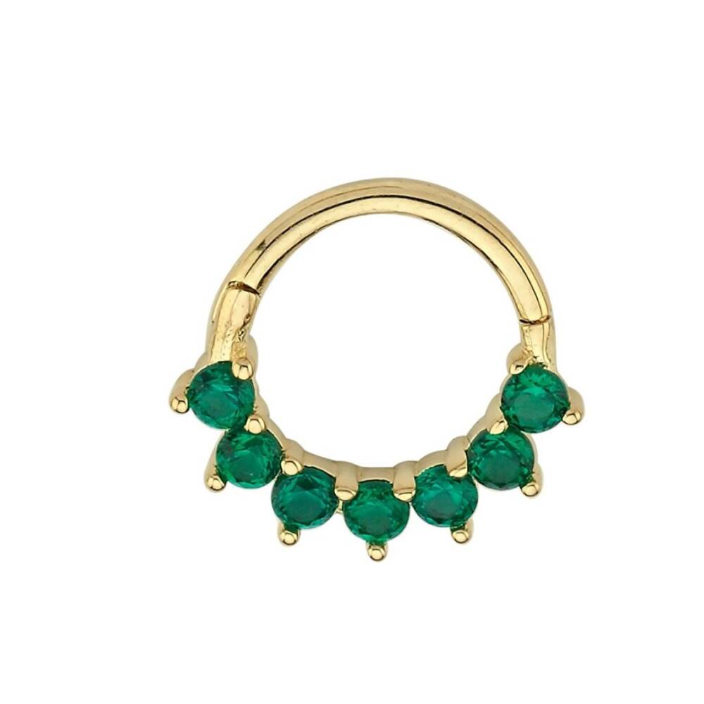 Yuvarlak Yeşil Taşlı Altın Helix Piercing - 1
