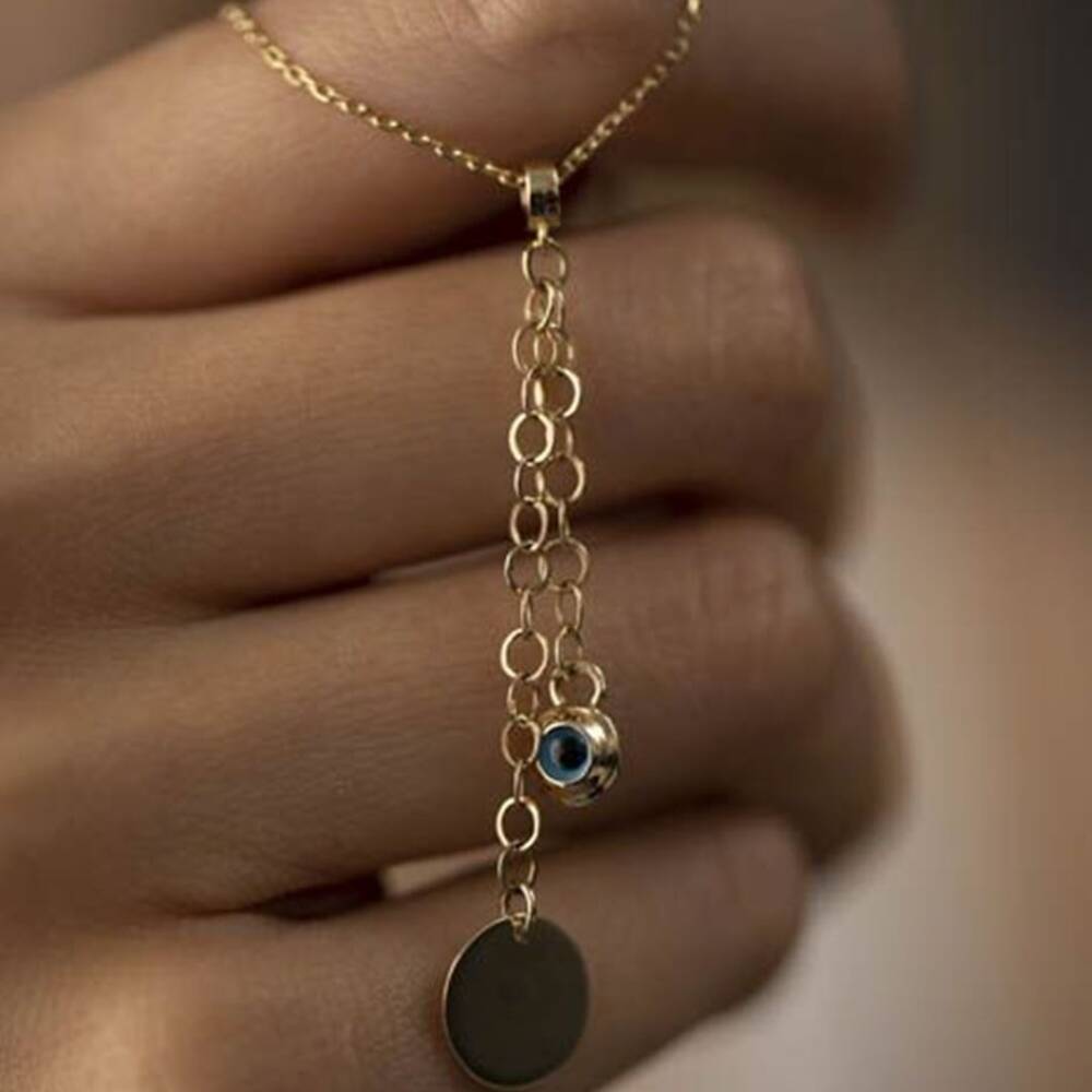Zincir Detaylı Nazar Boncuklu Altın Kolye - 1